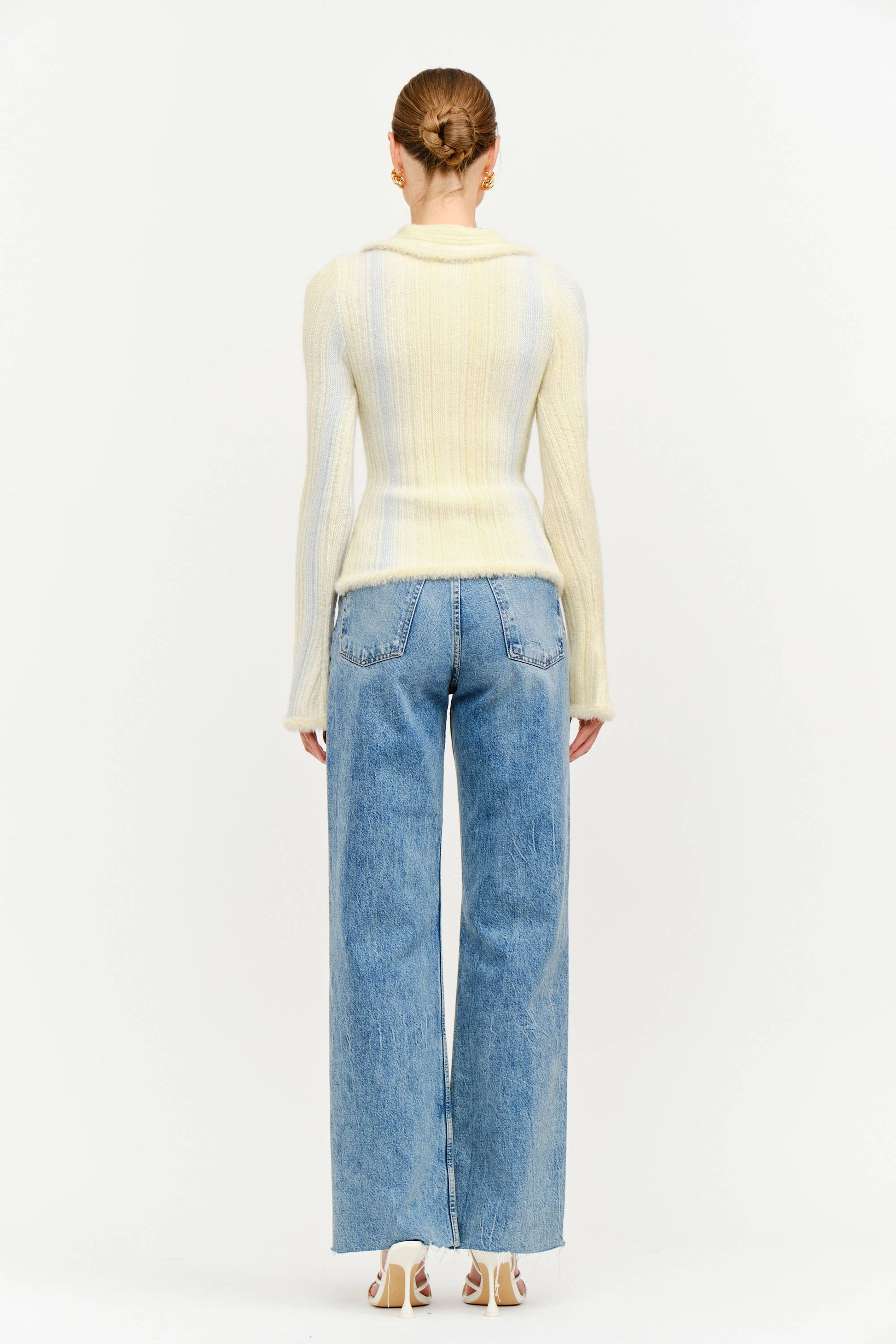 A dreamy balance of cozy and chic, this butter yellow knit top is your new layering essential. With a flattering slim fit, collared neckline, and soft ribbed texture, it’s both versatile and romantic.