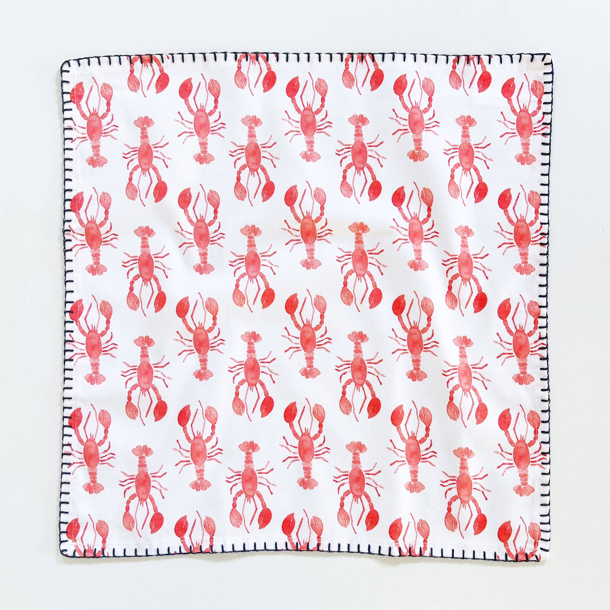 For the host who wants to create the perfect coastal table. This set of 100% cotton lobster print napkins brings nautical charm to any meal, featuring red watercolor lobsters framed with a navy whipstitch embroidered edge. Playful yet polished, these napkins are perfect for summer entertaining, clambakes, or everyday dining that calls for a splash of New England style.